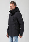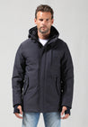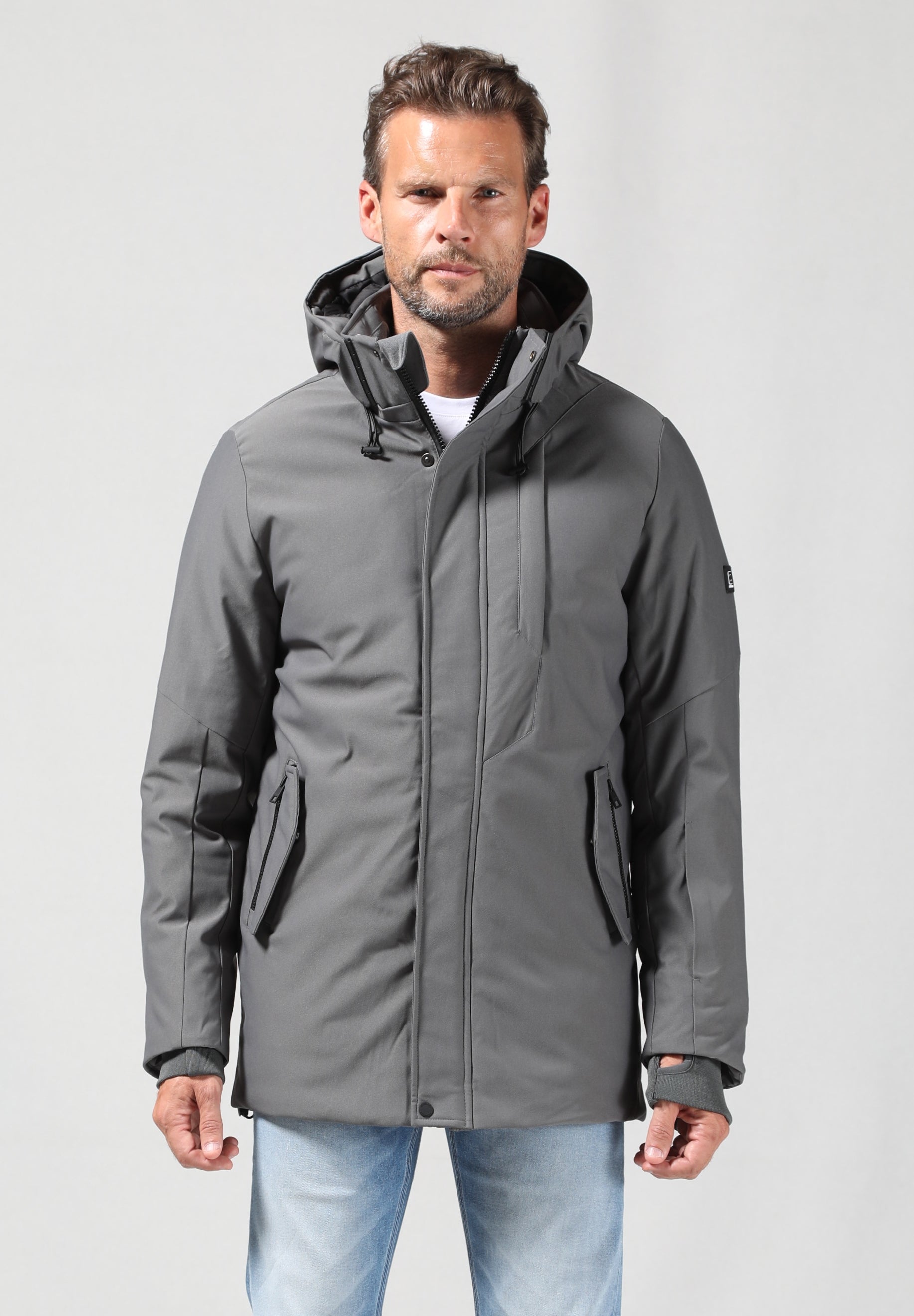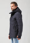 Deze moderne jas is uitgevoerd in een stevige waterafstotende twillstructuur, wat zorgt voor een stoere en gestructureerde uitstraling. De magnetische knopenlijst aan de voorkant biedt een strakke afwerking en extra gebruiksgemak. De afritsbare capuchon maakt de jas geschikt voor uiteenlopende weersomstandigheden en stijlen.