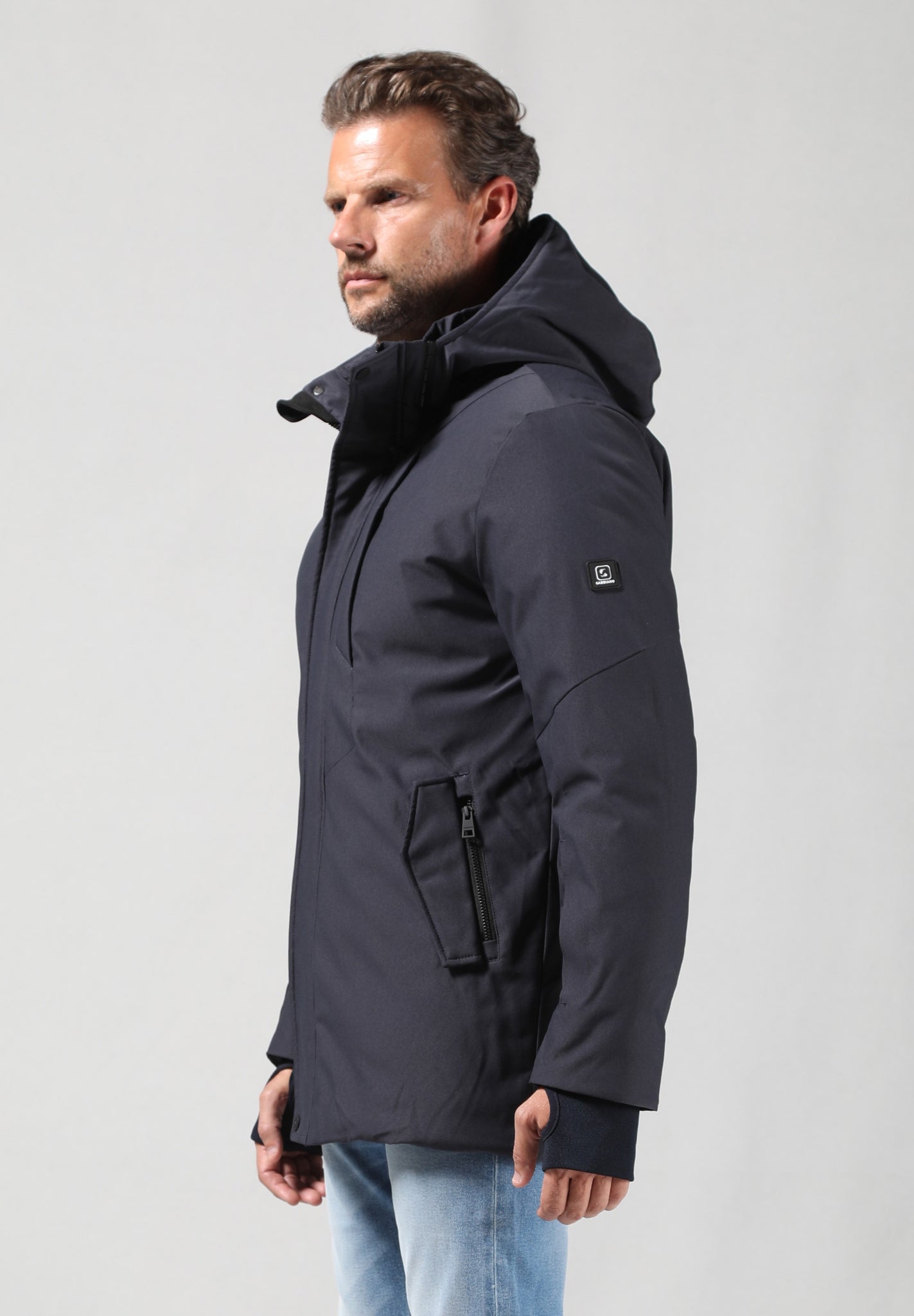 Een subtiele, verborgen rits aan de binnenzijde van de linkermouw biedt extra opbergruimte, bijvoorbeeld voor een pasje of oordopjes – onzichtbaar maar functioneel.