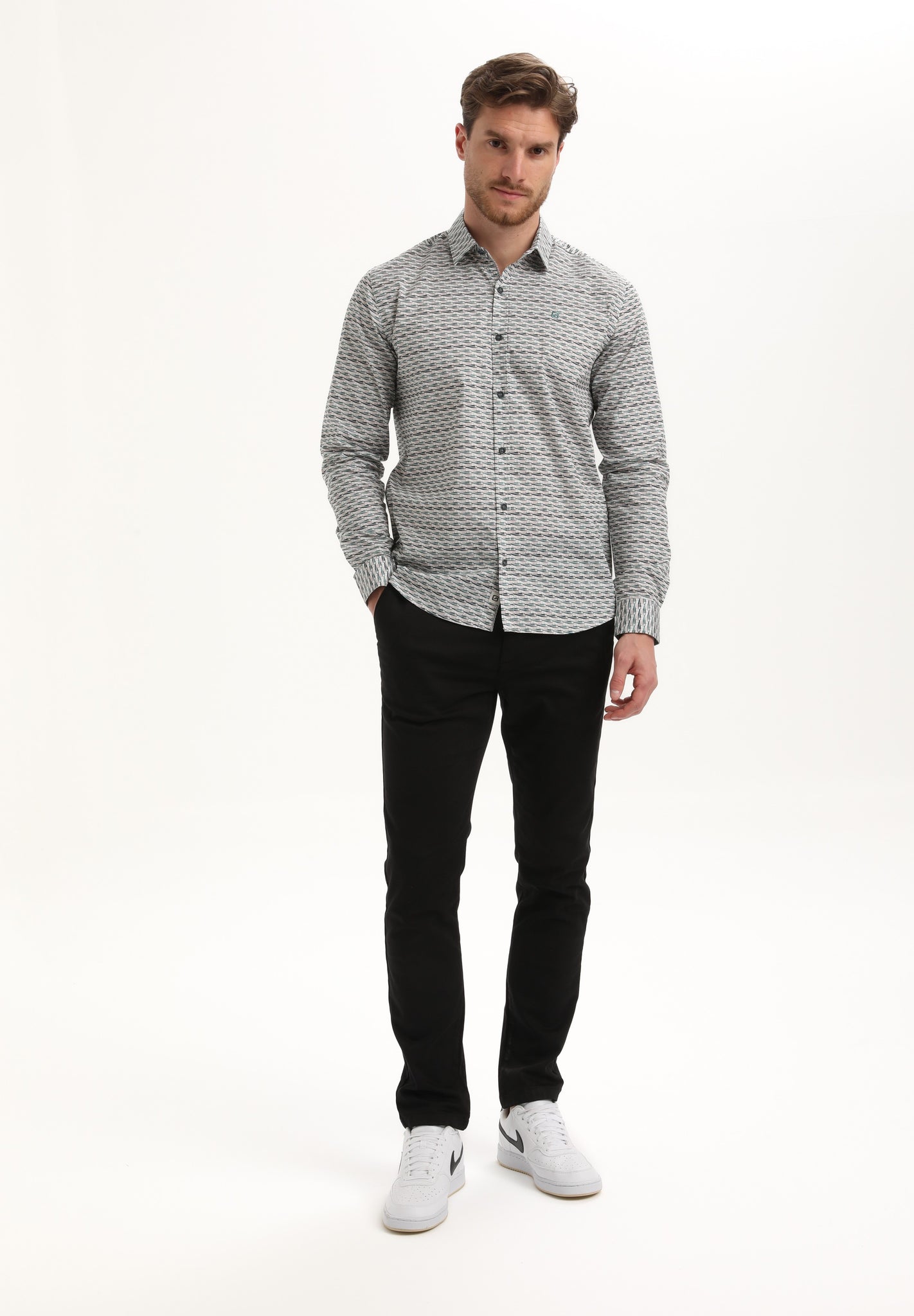 Printed poplin overhemd