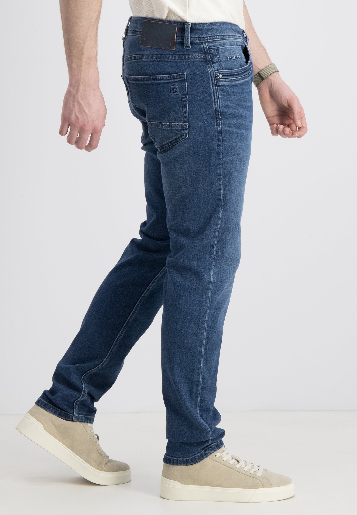Gemaakt van een zachte en rekbare katoen–elastaanblend, voelt de jeans comfortabel aan en behoudt hij de hele dag door zijn vorm. De 5-pocket stijl is afgewerkt met dubbele naden wordt verfijnd met een 3D-logo op de rechterachterzak, wat zorgt voor een subtiel maar onderscheidend brandingdetail.