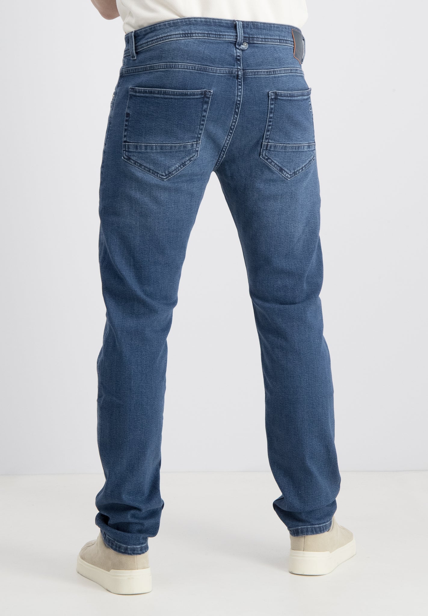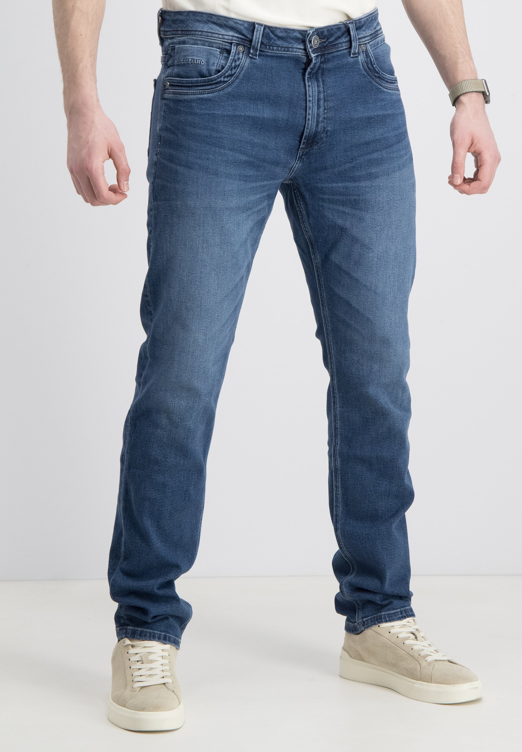 Deze regular fit straight leg jeans combineert een stoere, moderne uitstraling met optimaal draagcomfort. De wassing met subtiele vervagingen langs de bovenbenen en knieën geeft de broek een tijdloze, casual look die moeiteloos met elke outfit matcht.