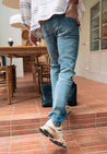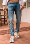 Deze slim fit jeans heeft een stoere wassing die elke outfit een eigentijdse look geeft. Dankzij de 4-way stretch sluit de broek mooi aan en blijft hij de hele dag comfortabel. Op de achterkant is de jeans afgewerkt met een subtiele embossing als uniek detail. Combineer met een basic T-shirt en sneakers voor een casual outfit, of draag hem met een overhemd en boots voor een robuustere look. Een onmisbare jeans die je moeiteloos het hele jaar door draagt.
