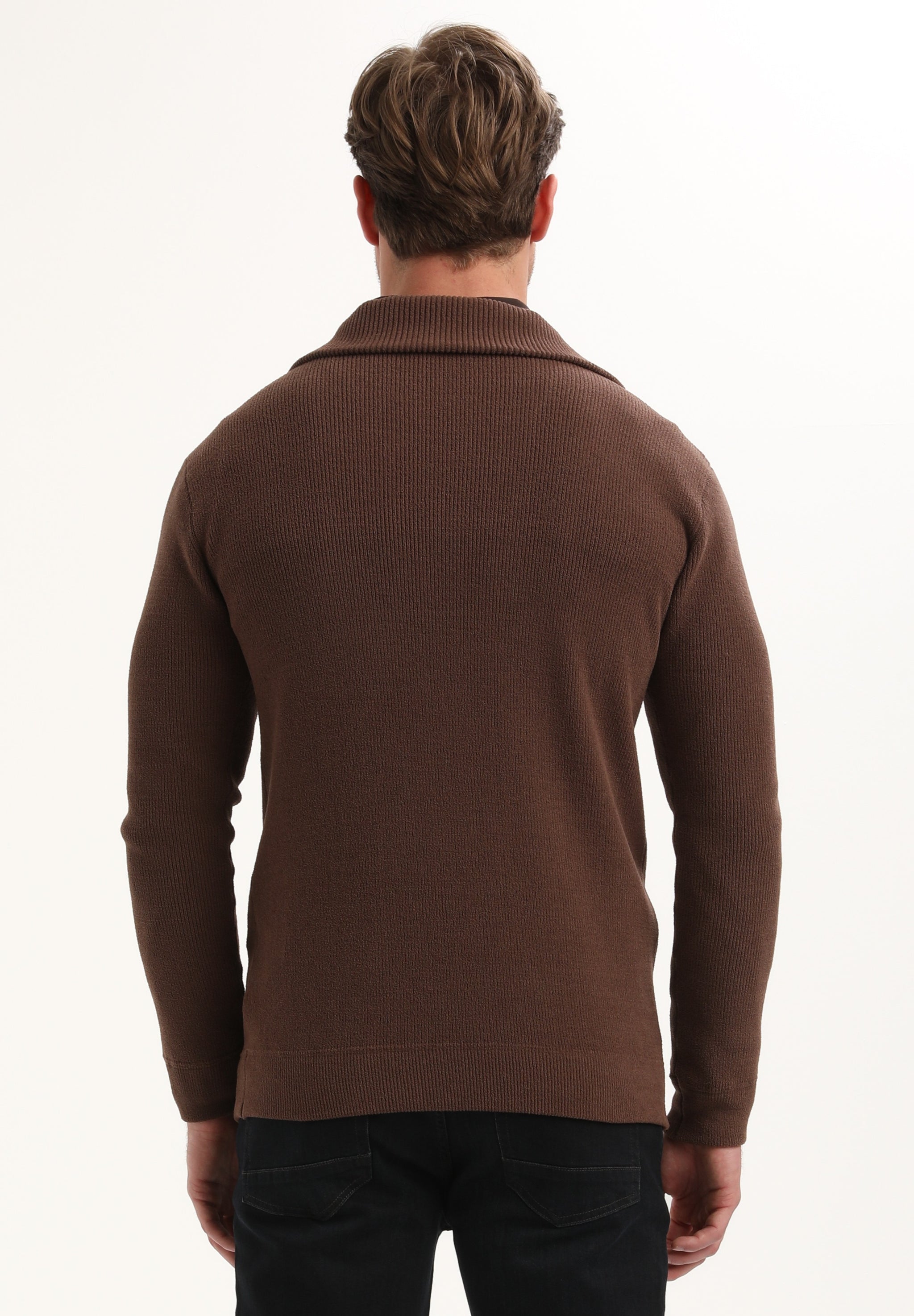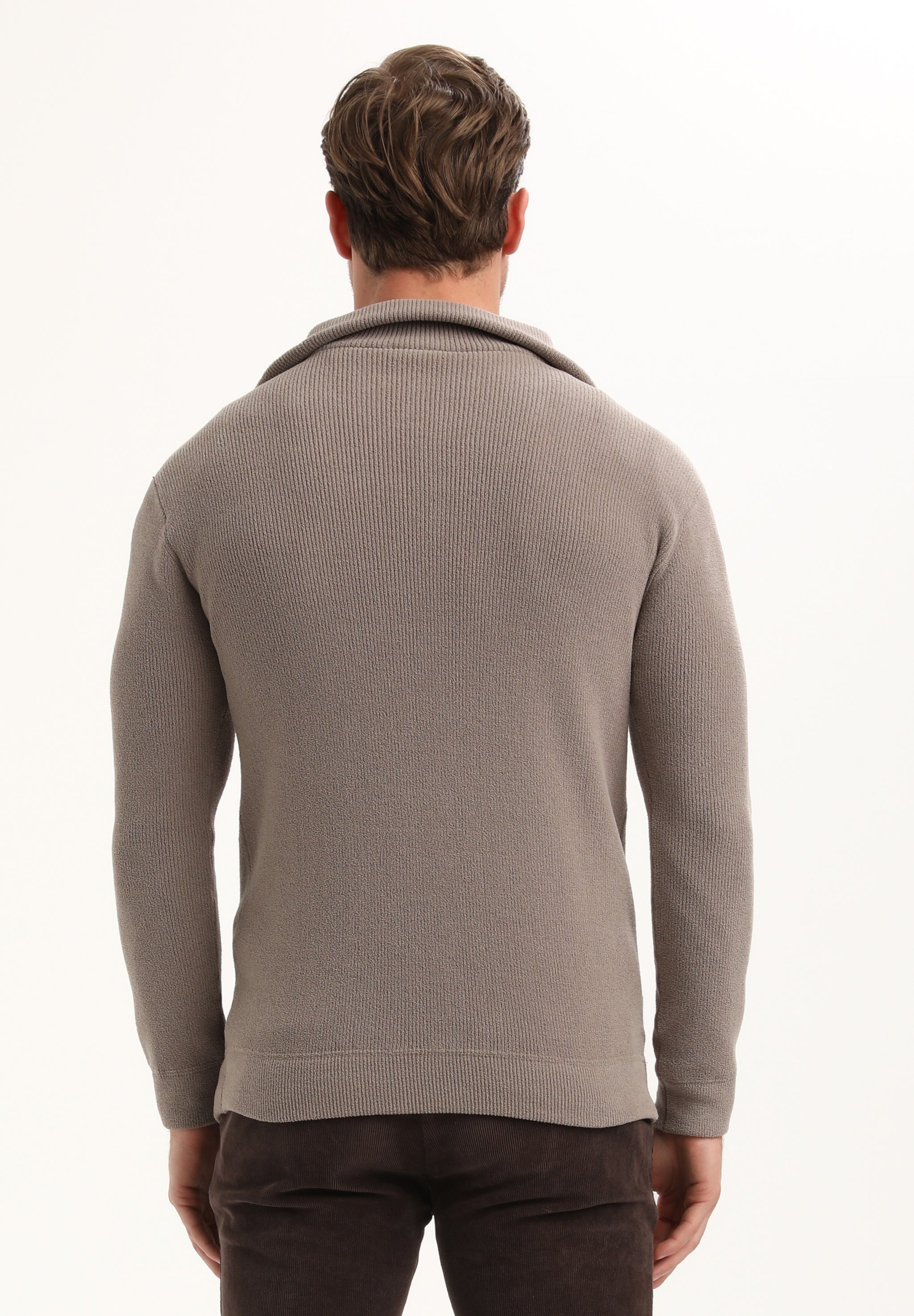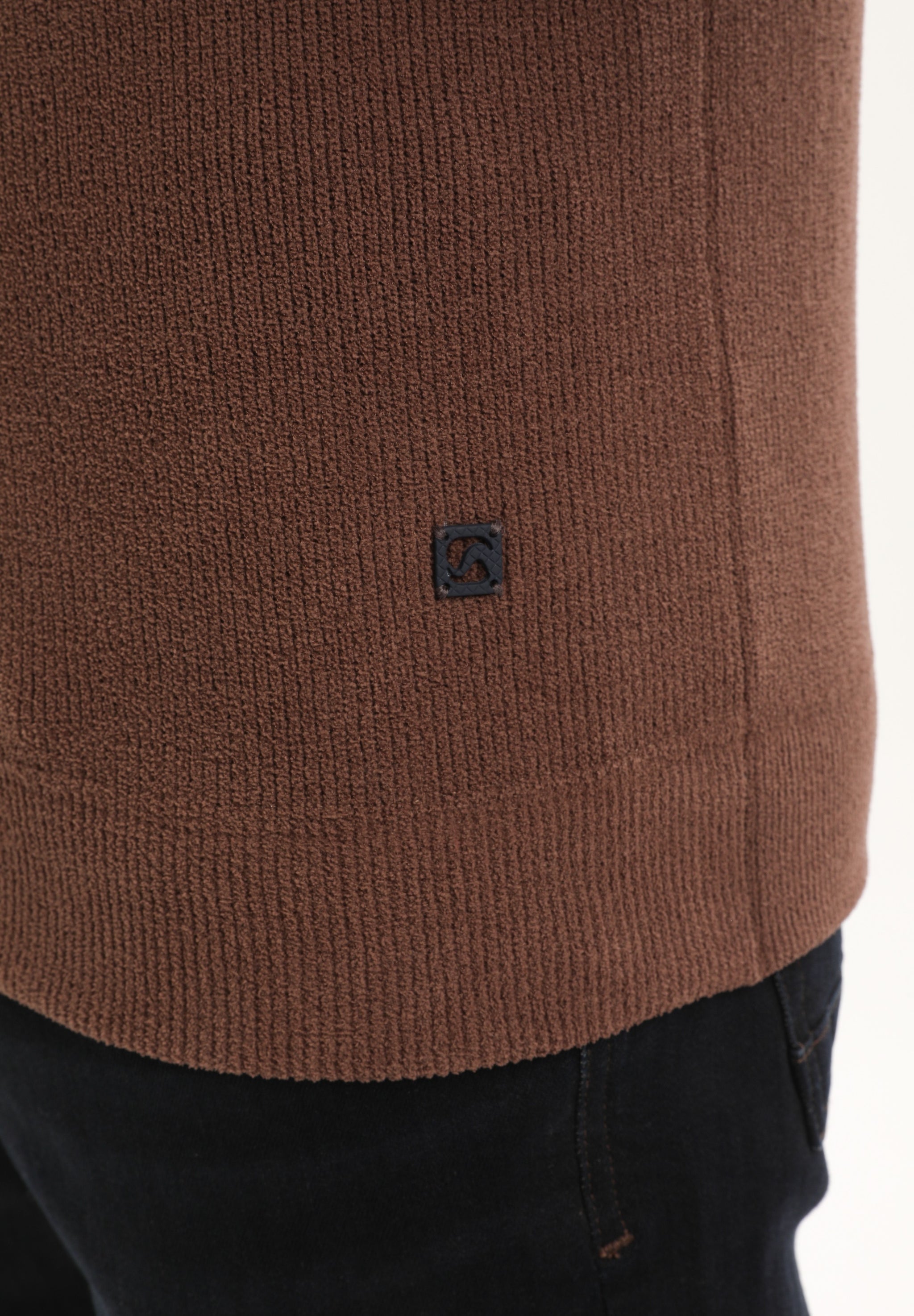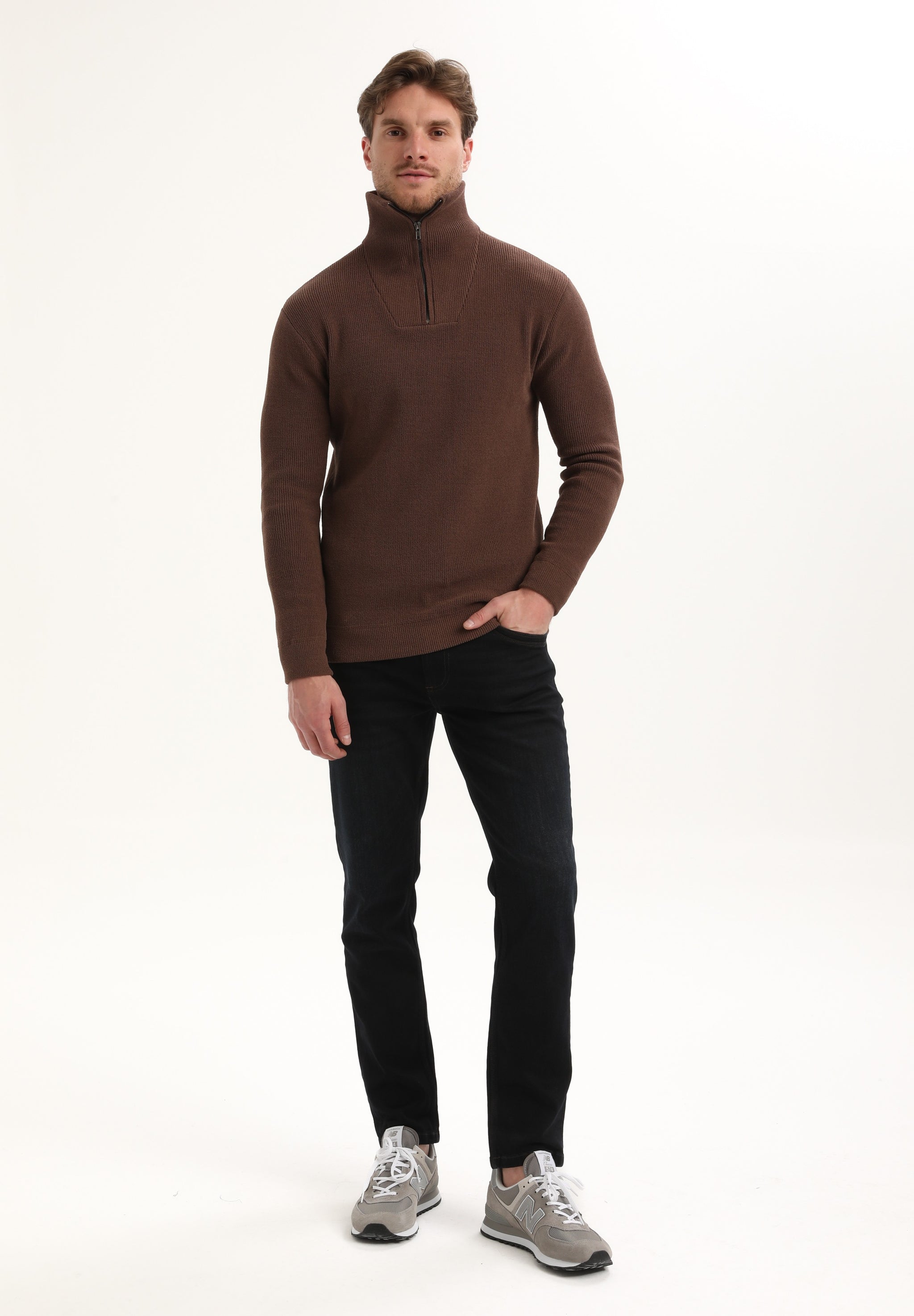 De zachte stof heeft een rijke, matte uitstraling en voelt prettig aan op de huid. De rits is afgewerkt met een herkenbaar maar subtiel logo, wat zorgt voor een verfijnde look. Combineer met een nette jeans voor een moderne en verzorgde outfit.